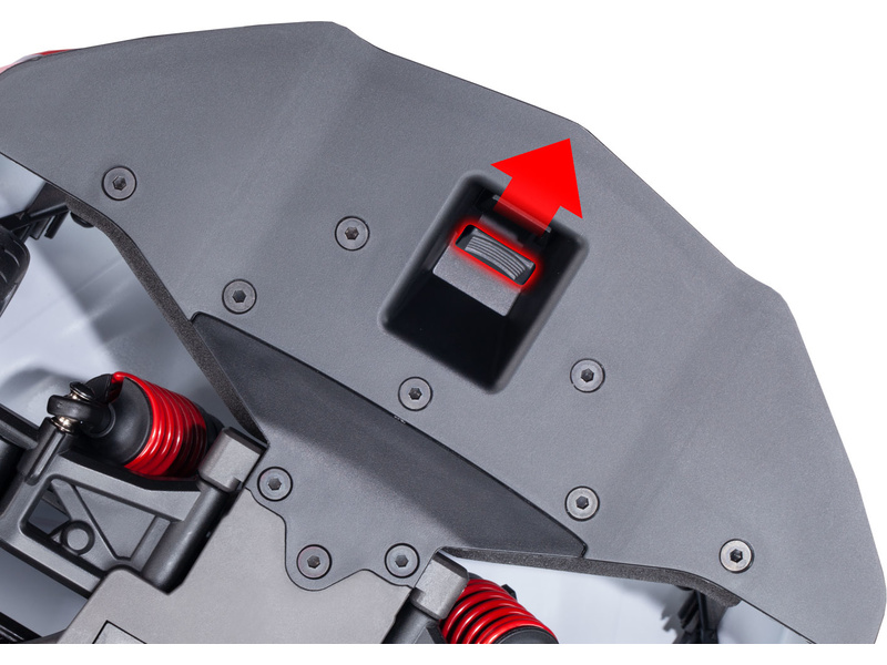 Bezdrátový modul Traxxas Link ™ je továrně instalovaný ve vysílači pro využití plného potenciálu modelu s jednotlivými driftovacími režimy. Pomocí přehledné aplikace můžete přizpůsobit nastavení a odemknout pokročilé funkce ladění. Zmáčknutím přepínače na vysílači aktivujete elektrickou ruční brzdu, která přibrzdí zadní kola, pro jednodušší zahájení smyku.