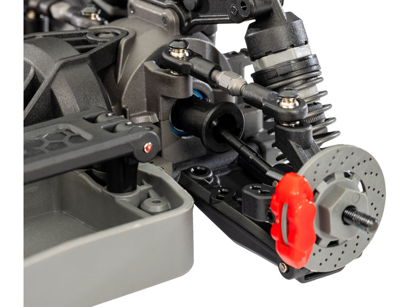 Podvozek 4-Tec 3.0účinně překonává nerovnosti pomocí olejových tlumičů s exkluzivními X-kroužky, které skvěle těsní. Tlumiče jsou nastavitelné - předpětí pružin lze změnit pomocí podložek, můžete upravit viskozitu oleje v tlumiči, nebo můžete pružiny vyměnit za jiné s různou tuhostí. Instalované extra měkké pružiny poskytují maximum přenosu hmotnosti pro zahájení driftu.