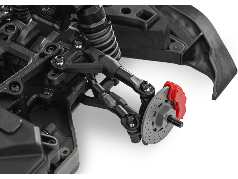 Model je navržen pro maximální všestrannost. Balení obsahuje dvěma sady 1,9“ pneumatik. Pneumatiky s tvrdou směsí instalované na modelu používejte na jakýkoli tvrdý abrazivní povrch, jako je chodník nebo asfalt. Přiložené pneumatiky s měkkou směsí poskytují lepší kontrolu driftu na hladkých površích.
