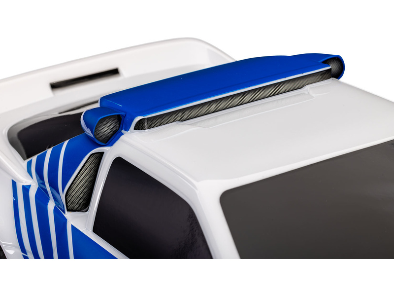 To manage the steering even at higher speeds, there is an electronic stability program TSM. Of course, there is an easy body clamping system without clips. The licensed body of the legendary Ford RS200 special is equipped with front LED lighting.
