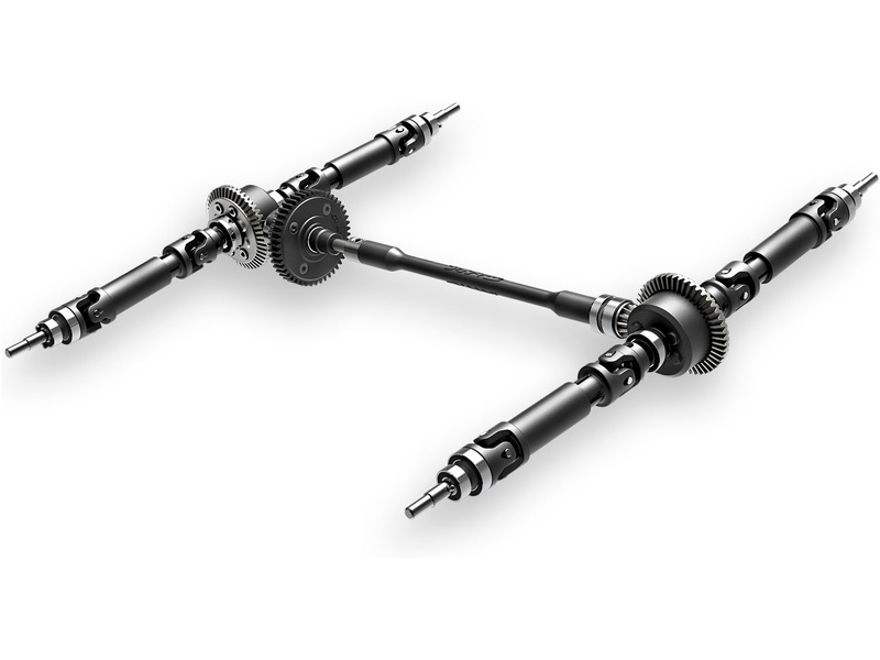 The 4WD system distributes power to each wheel using front and rear planetary differentials. The differentials are twice as large as those in 1:16 models. Silicone seals and X-rings allow for fine-tuning of the degree of adhesion using silicone oils of varying viscosity.