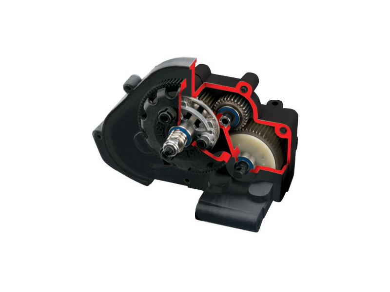 Převodovka, disková spojka a planetový diferenciál jsou zde spojeny v jednom kompaktním celku. Převodovka s třecí spojkou spolehlivě přenáší výkon motoru, planetová převodovka diferenciálu Magnum 272 má ozubená kola vyrobená z kalené oceli. Tento systém vyžaduje naprosto minimální údržbu. K dispozici jsou pastorky a ozubená kola s různými počty zubů, takže si můžete model přesně vyladit.