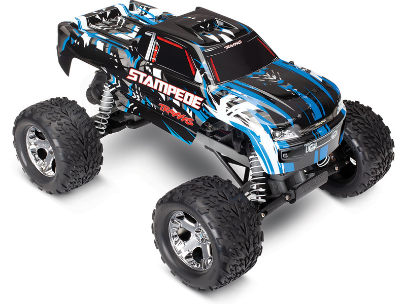 RC model auta Traxxas Stampede je plně sestaven a připraven k jízdě. Pohání jej výkonný stejnosměrný motor Titan 550 12T ve spojení s regulátorem otáček XL-5. Monster Stampede dosahuje maximální rychlosti až 48 km/h! Světlá výška až 100 mm vás protáhne každým terénem. Úžasně zpracovaná karoserie ProGraphix zaujme již na první pohled. Součástí balení je vysílač Spektrum TQ 2.4GHz, 7čl. pohonný NiMH akumulátor a 12V rychlonabíječ.