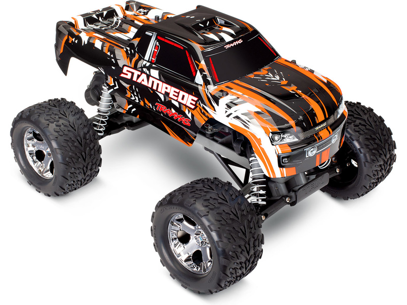 RC model auta Traxxas Stampede je plně sestaven a připraven k jízdě. Pohání jej výkonný stejnosměrný motor Titan 550 12T ve spojení s regulátorem otáček XL-5. Monster Stampede dosahuje maximální rychlosti až 48 km/h! Světlá výška až 100 mm vás protáhne každým terénem. Úžasně zpracovaná karoserie ProGraphix zaujme již na první pohled. Součástí balení je vysílač Spektrum TQ 2.4GHz, 7čl. pohonný NiMH akumulátor a 12V rychlonabíječ.