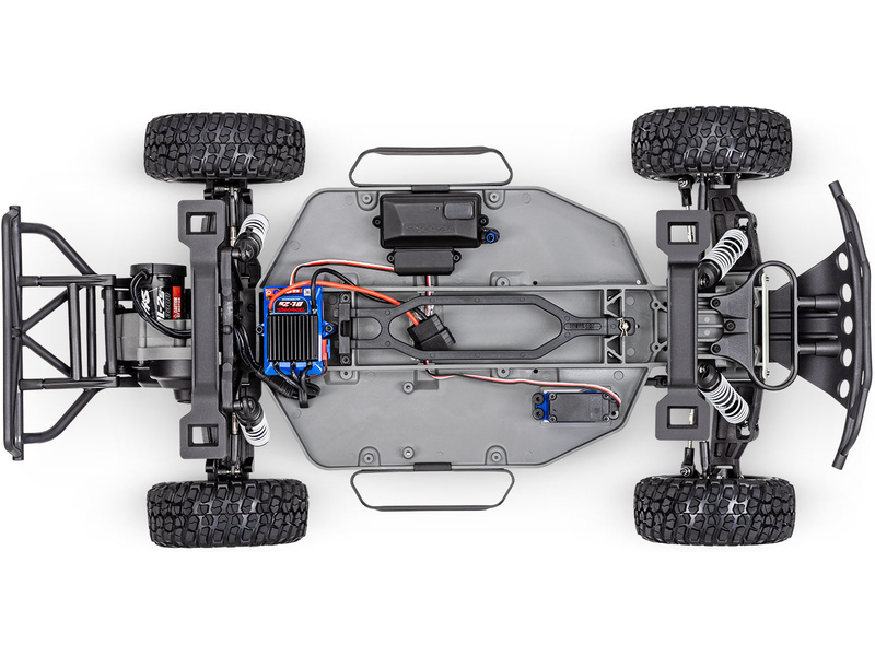 Jednoduchá RC souprava Traxxas TQ 2.4GHz poskytuje precizní mechaniku pro přesné řízení. Nově je na modelu použitý bezsponkový systém uchycení karoserie pro snadnou výměnu pohonného akumulátoru.