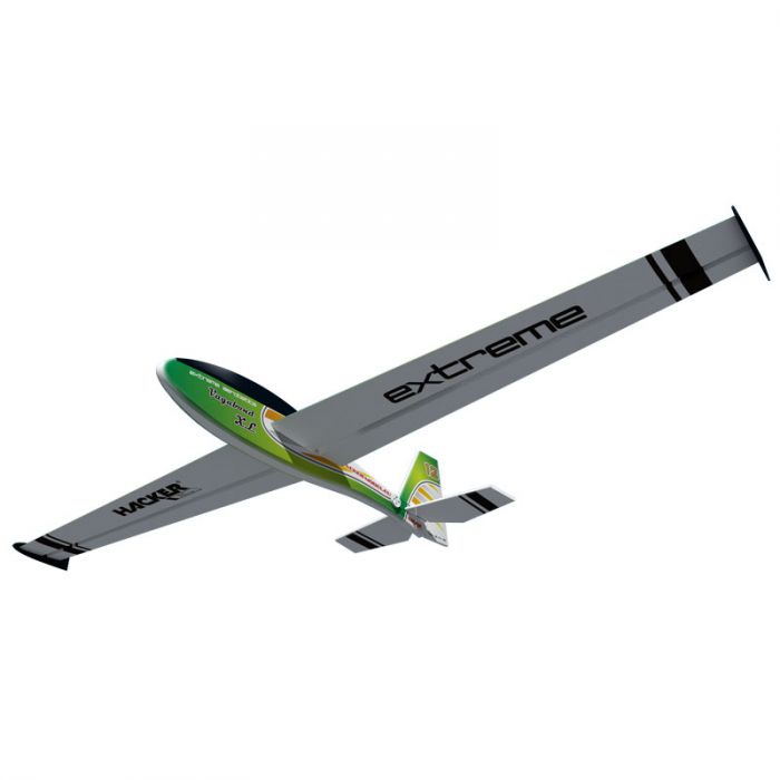 Populární svahový akrobatický větroň ve verzi XL v atraktivních barevných variantách s větším rozpětím křídla, větší boční plochou trupu, většími ocasními plochami a ovládáním plovoucího výškového kormidla kladkou pro výchylky ±90°!