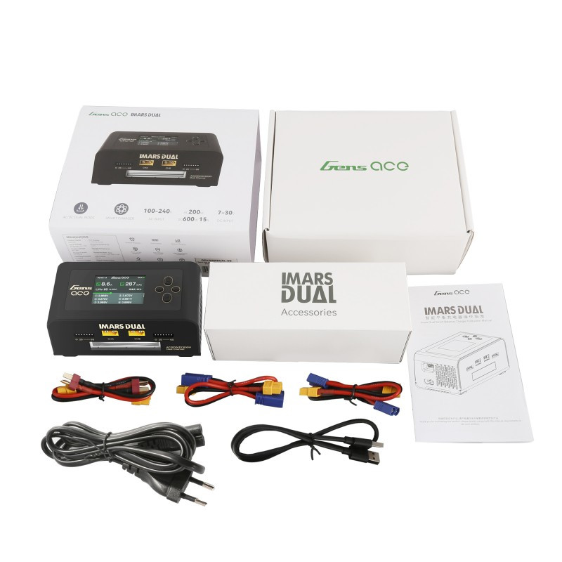 - 1× dvoukanálový nabíječ Gens Ace Dual,