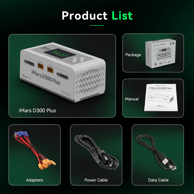 GensAce Imars D300 Plus G-Tech Dual Channel AC/DC 300W/700W je inteligentní dvoukanálový nabíječ/vybíječ, který je primárně navržen pro nabíjení/vybíjení a údržbu „chytrých“ akumulátorů Gens Ace G-Tech. Tento nabíječ je však možné používat i s obyčejnými LiPo, LiHV, LiFe a NiMH akumulátory.