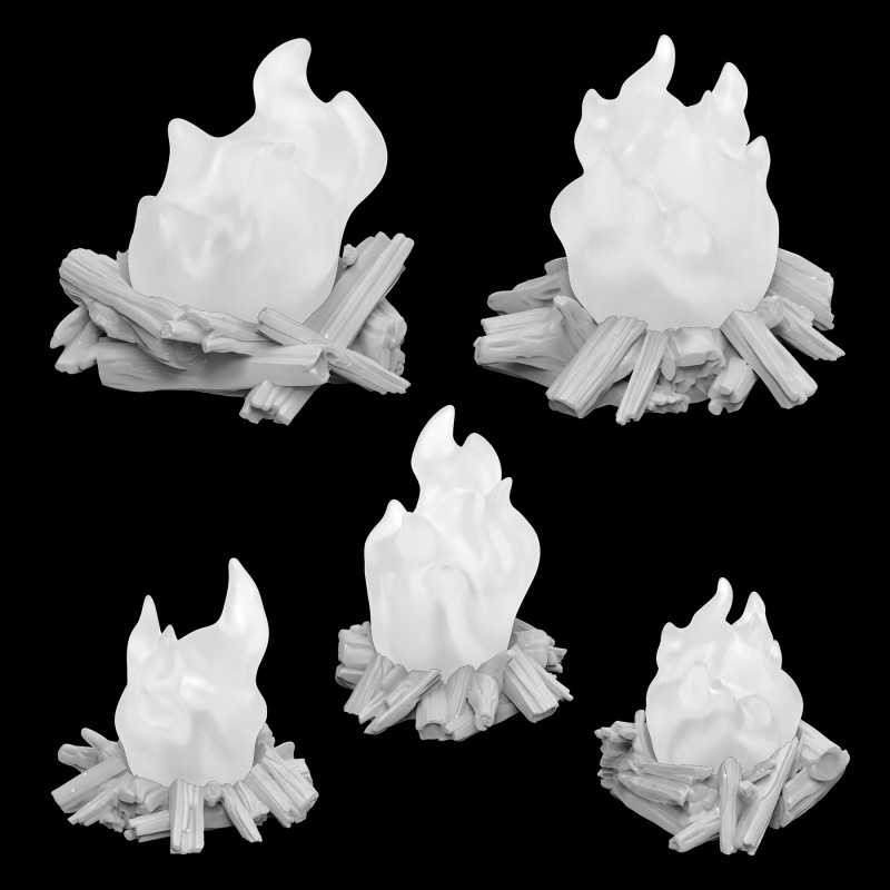 Sada obsahuje 5 ks 3D tištěných táborových ohnišť.