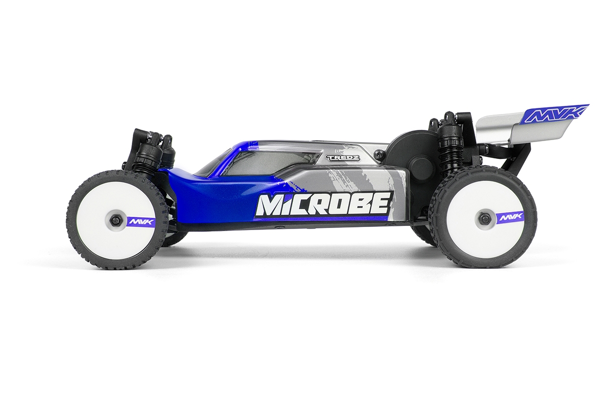Elegantní 1,5 mm eloxované hliníkové plato podvozku, osazení kuličkovými ložisky a plynulá 3kolová zadní převodovka společně dodávají modelu Microbe stabilní a přesný pocit z jízdy. Přidejte olejové tlumiče a odvětrávaná kola s pěnovými vložkami a získáte malou buggy, která miluje zatáčky, pohlcuje nerovnosti a s jistotou vystřeluje ze zatáček.