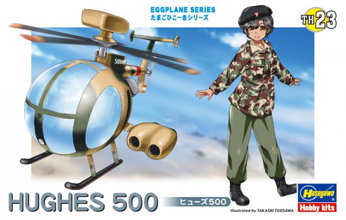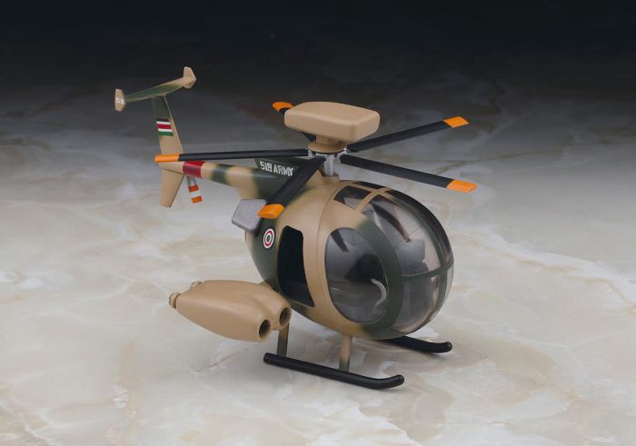 Plastikový model - karikatura amerického lehkého útočného vrtulníku Hughes 500.