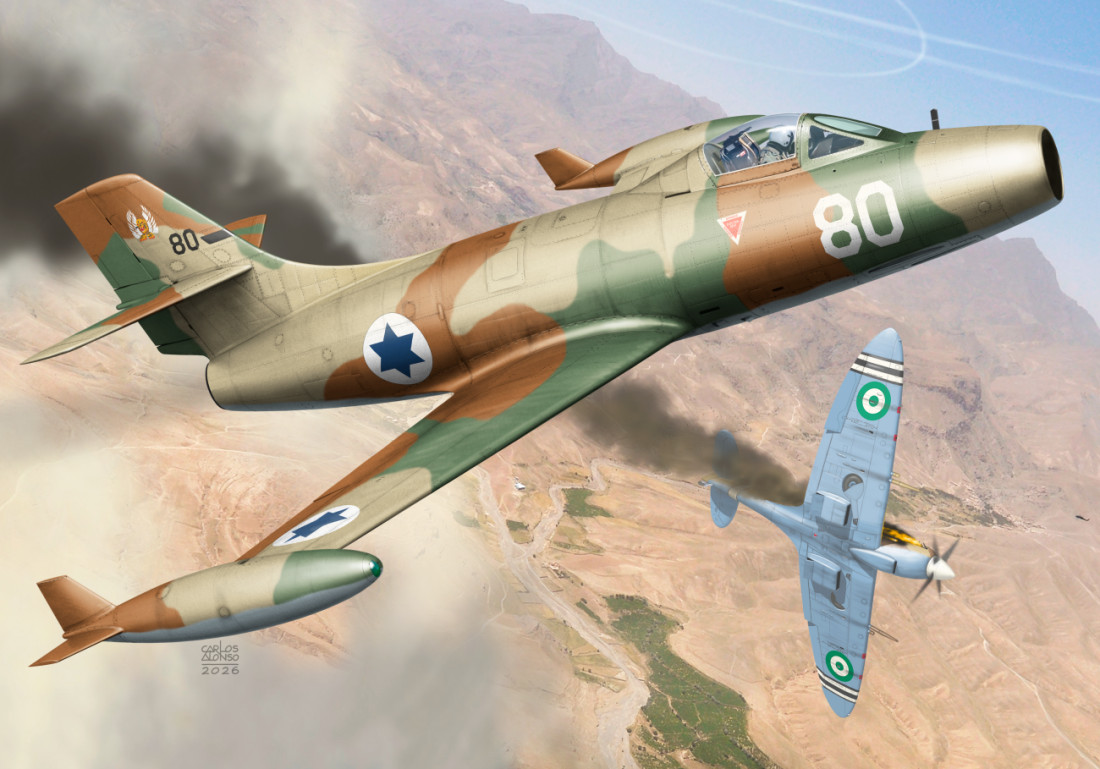 Plastiková stavebnice francouzského stíhacího proudového letounu Dassault MD.450 Ouragan.