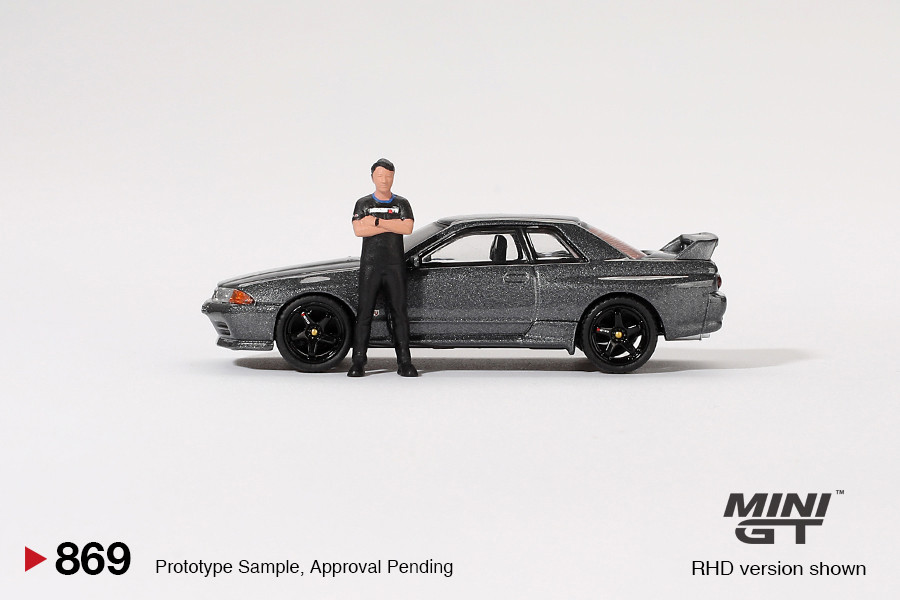 MINI GT MGT00869-R - 1:64 Nissan Skyline GT-R (R32) Gunmetal w/ Tsugio Matsuda Figure