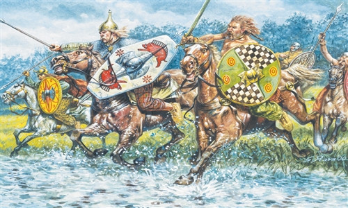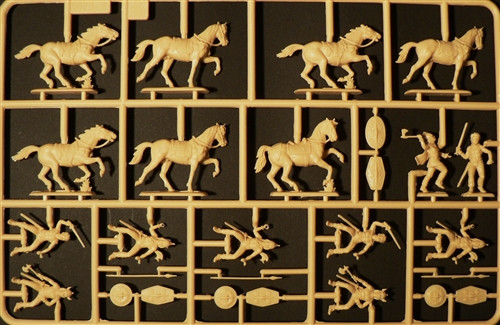 Sada plastikových figurek zachycující starověkou keltskou kavalerii. Set obsahuje 32 nenabarvených figurek vojáků a koní v různých pozicích, výstroj a výzbroj.