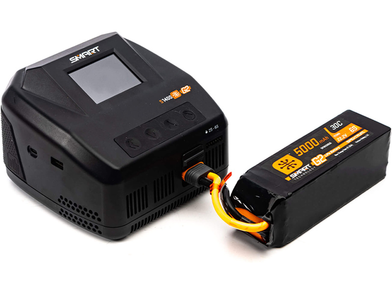 Komplexní balíček pro letadla. Nabíječ S1400 G2 1x400W s LiPo baterií 22,2V 5000mAh 6S 30C Smart LiPo G2 IC5. Výkonný nabíječ, snadné a bezpečné nabíjení.
