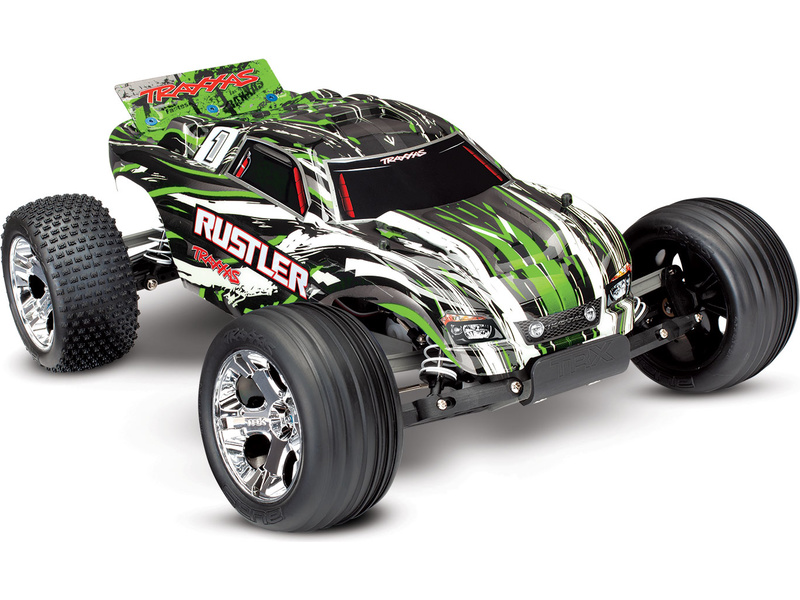 RC model auta Traxxas Rustler Stadium Truck je plně sestaven a připraven k jízdě. Pohání jej výkonný stejnosměrný motor Titan 550 12T, regulátor XL-5 s podporou LiPol akumulátorů. RC souprava Traxxas TQ 2.4 GHz. Auto jezdí až 55 km/h!
